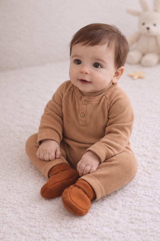 Baumwolle Baby Booties Bronze – Weiche Babyschuhe aus Bio-Baumwolle | Baby LI’AR