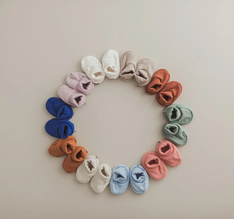 Entdecke unsere weichen Baby Booties für Neugeborene und Babys. Die kuscheligen Babyschuhe bieten optimalen Halt, sind hautfreundlich und halten kleine Füße angenehm warm. Erhältlich in zeitlosen Farben – perfekt für Mädchen und Jungen sowie als Geschenk zur Geburt.