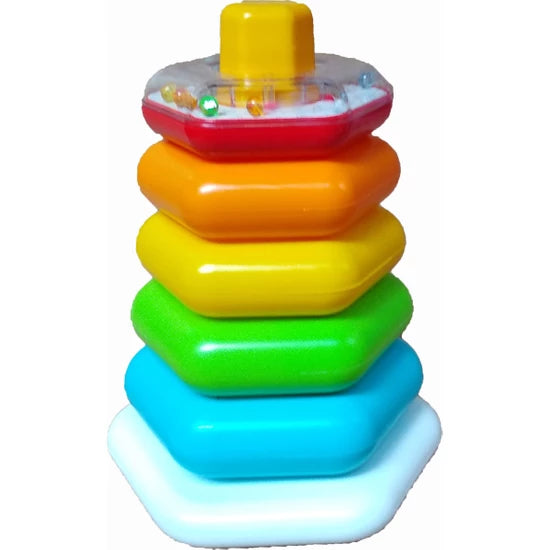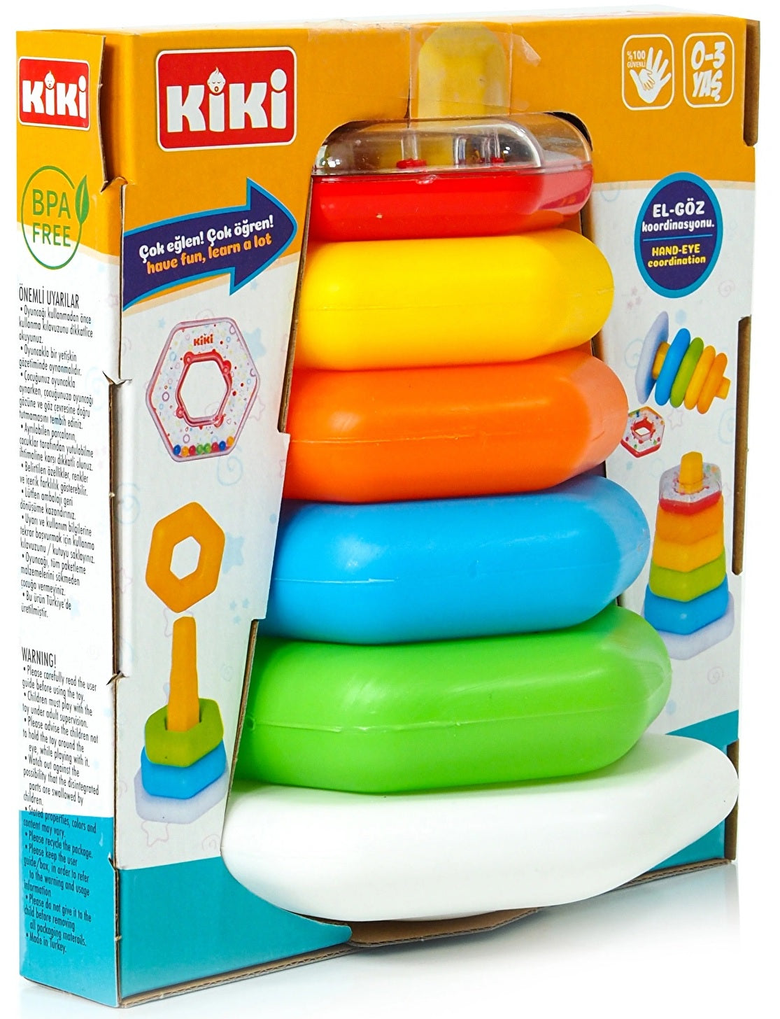 Dieses Stapelspielzeug bietet vielseitigen Spielspaß für Ihr Kind. Die Ringe können gestapelt werden, der Turm kann zusammengesetzt werden und die Beißringe sind frei von schädlichem BPA. Sie unterstützen damit das Zahnen Ihres Babys und fördern gleichzeitig die motorischen Fähigkeiten. Ein sicheres und unterhaltsames Spielzeug für Ihr Kind.